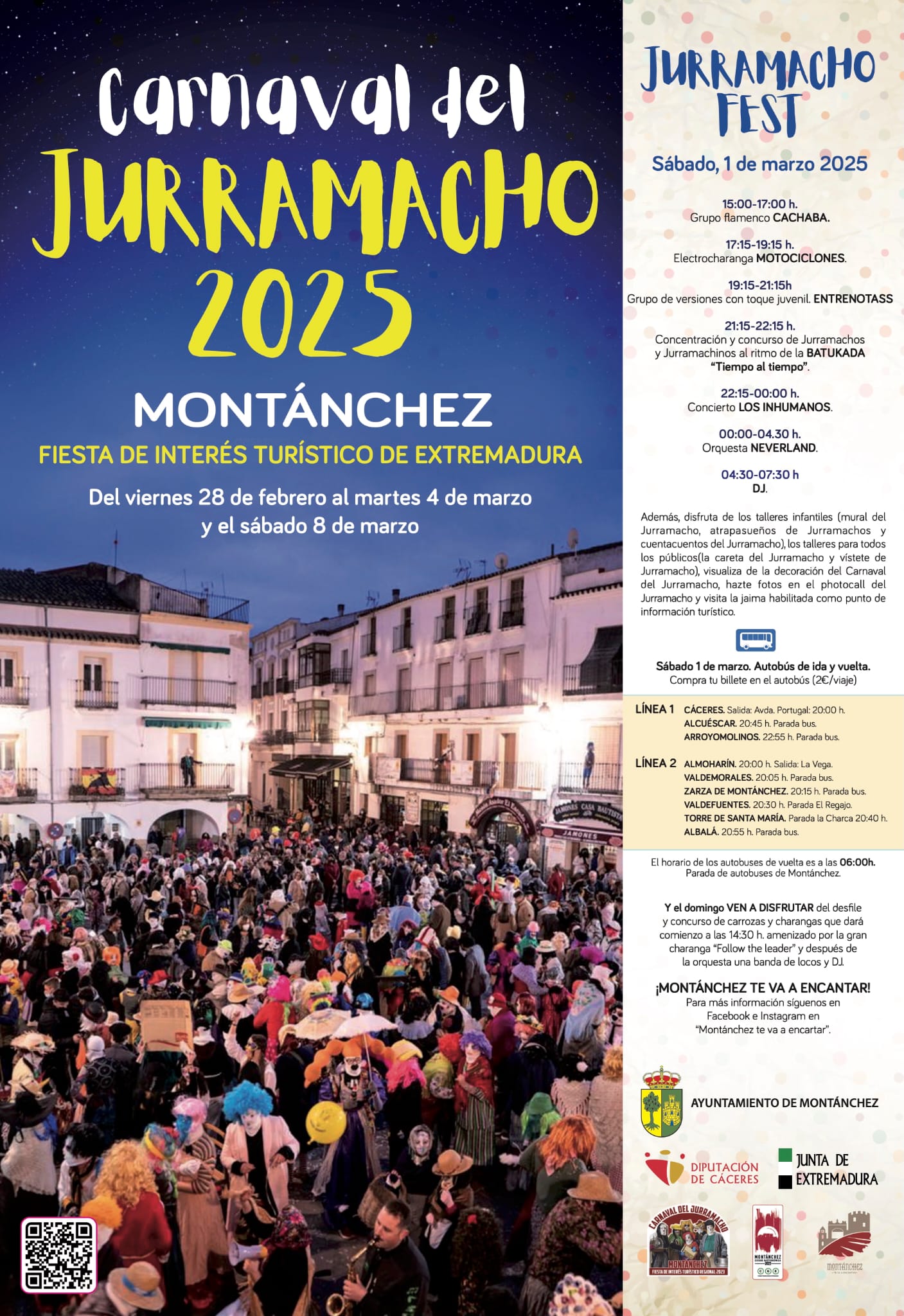 Las Carantoñas de Acehúche: En enero, este pequeño pueblo de Cáceres celebra un ritual ancestral donde hombres disfrazados de animales salvajes recorre las calles persiguiendo a los habitantes. Es una representación única de las tradiciones precristianas que te transportará a otro mundo y está declarada fiesta de Interés Turístico Nacional, aspirando al reconocimiento de Interés Turístico Internacional. Este año 2024 participaron más de 70 carantoñas, 200 ‘regaoras’ y 15 ‘tiraores’.